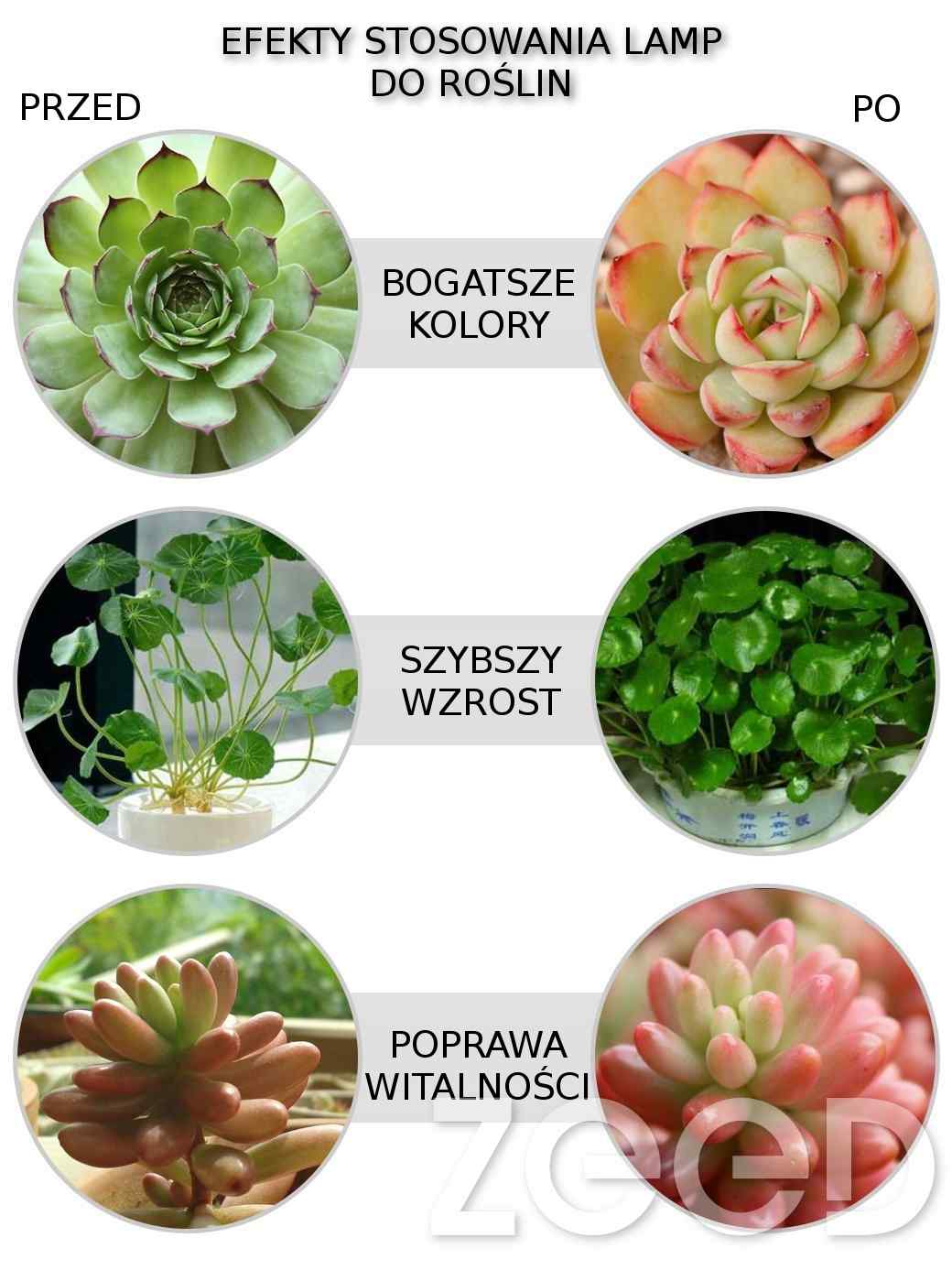 Główne zastosowania lampy to doświetlenie roślin: